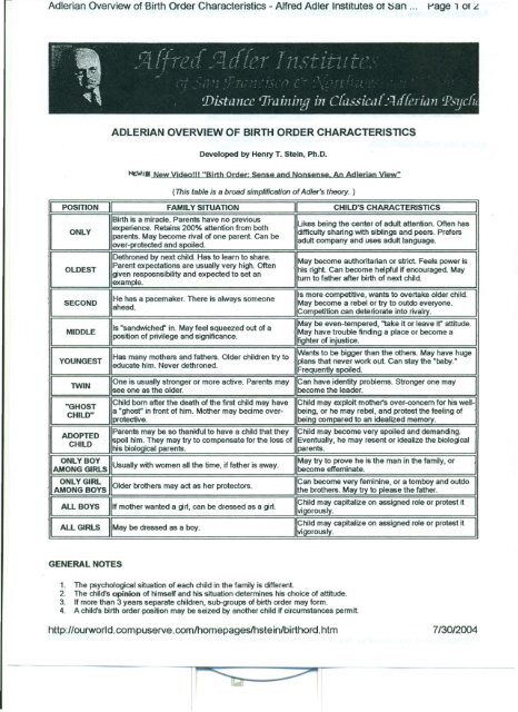 Alfred adler birth order theory pdf. Adler hypothesized that the defendation of birth order would be started to disappear when families have become less competitive and autocratic and more cooperative and democratic. This differed from Freuds view of behavior as.